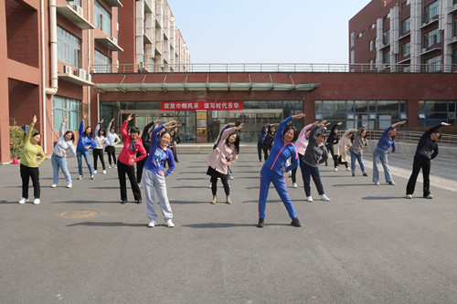 本次活动包括教职工广播体操展演和创意手工制作两个环节,在学院西侧广场,女教师们早早来到了展演场地,队列整齐,蓄势待发。随着第九套广播体操音乐响起,在跃动轻快的旋律下,场上的女教师们认真做好每一个体操动作,伸臂、转体、踢腿、弯腰等动作娴熟到位,整场活动大家精神饱满,动作整齐标准,展现了女教职工昂扬向上的精神风貌。