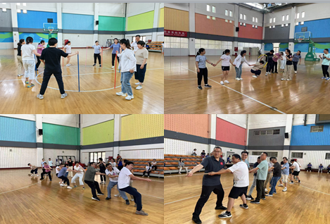 翟小懿老师带领全体老师做了热身运动,做好充足的比赛准备。