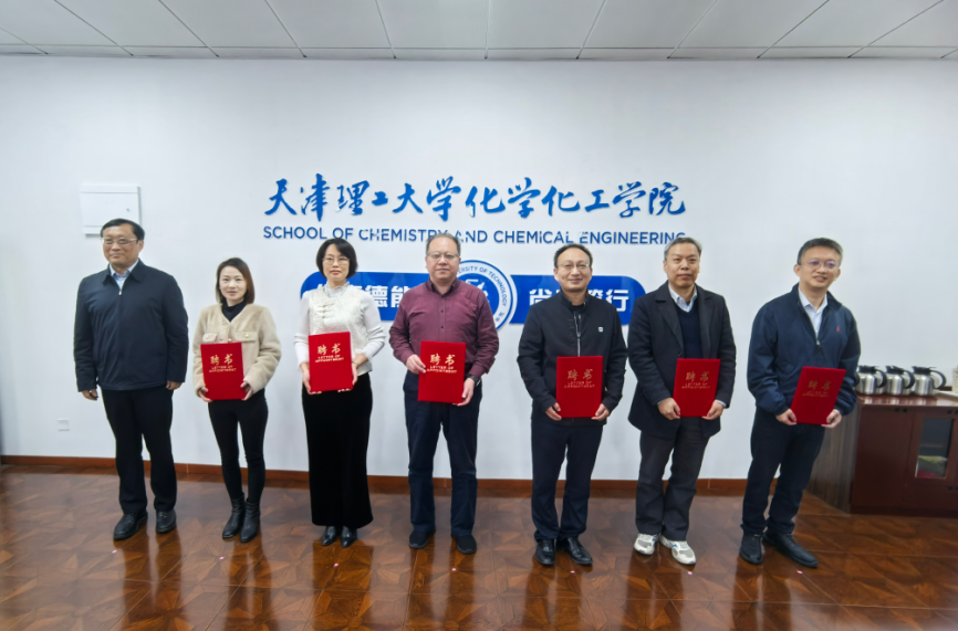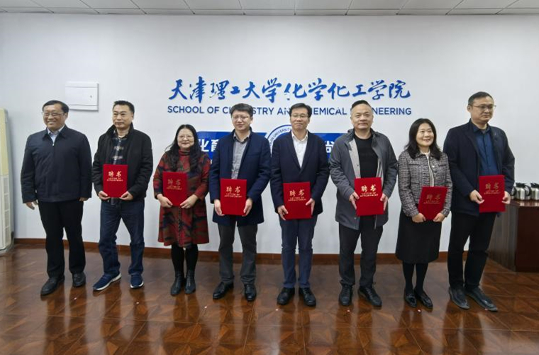 校党委书记刘东志为天津市普通高等学校对接产业链绿色石化类本科教学指导委员会的专家、委员代表颁发聘书。