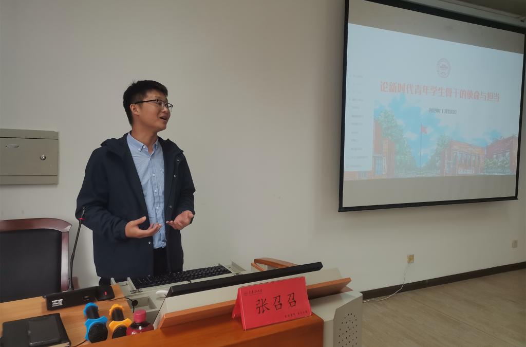 校党委学工部张召召老师以《论新时代青年学生干部的使命与担当》为题,从学生骨干的使命与担当、认识和作用、应具备的素质、礼仪常识等四个方面开展专题讲座,他深入且细致地为同学们讲解了提升学生干部能力素养的现实意义、当前学生骨干现状及提升路径,鼓励全体学员要在实干中不断加强理论学习、提升政治素养、增强业务能力,形成比学赶超的良好氛围,为学校发展贡献青春力量。在场学员受益匪浅,表示会在未来的学习和工作中,树立坚定理想信念,发挥自身优势,为班级、社团和学院发展全力以赴,奋勇前行。