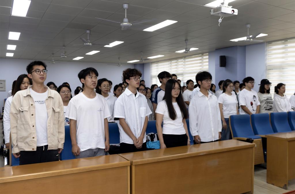 开班仪式在庄严的国歌声中拉开帷幕,全体师生起立,齐唱国歌。接着,相关负责老师宣读开班决定、介绍培训安排。本次培训内容以明确入党流程、增强党性修养为重点,围绕党章、党史、《中国共产党发展党员工作细则》等开展培训,并设置有形势政策教育、劳动实践、志愿服务,引导青年学生端正入党动机,做挺膺担当奋斗者,以实际行动向党组织靠拢。