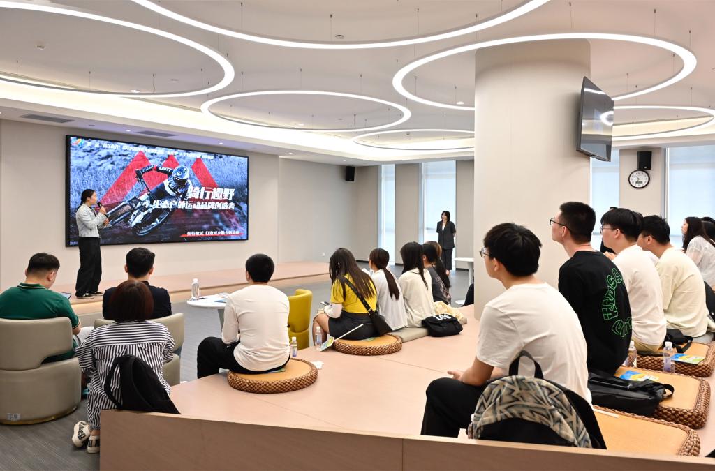 在首届“创在南开”青年创新创业大赛获奖项目分享环节中,生态户外运动品牌“骑行趣野”创始人仇越和飞屋文化影音传播工作室负责人董吉亮结合自身经历,分享了创业过程中的心得体会,生动展现了从创意孵化到项目落地的实践路径,引发师生热烈讨论与深入思考。座谈交流结束后,师生一行参观了天开高教科创园综合服务中心,详细了解园区在企业全生命周期服务中的创新举措和配套支持,进一步拓宽了对创新创业环境的认知视野。