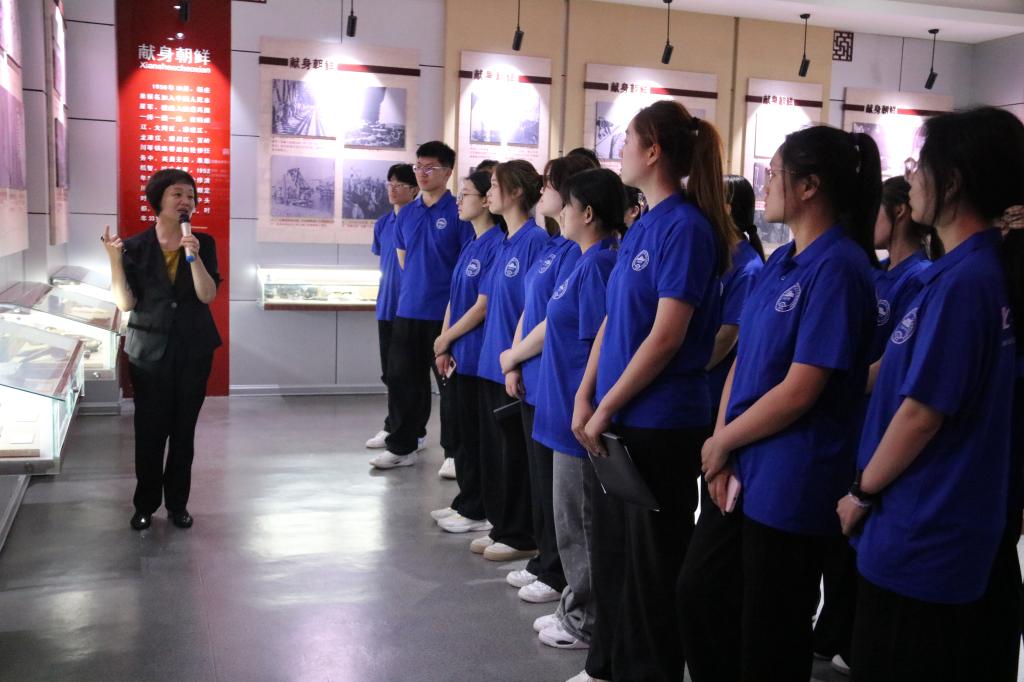示范性入团仪式结束后,全体师生在讲解员的带领下参观天津杨连弟烈士纪念馆。杨连弟烈士是海河儿女的优秀代表,是伟大的中国人民志愿军的一员,在参观的过程中,讲解员详细讲述了杨连弟烈士的英勇事迹,为同学们开展了一场生动的“场馆里的思政课”。团员们驻足凝视馆内的珍贵文物与历史资料,深切感受到杨连弟烈士身上所体现出的爱国主义、国际主义和革命英雄主义精神,他抢修清川江大桥时壮烈牺牲的英雄壮举,更让在场的每一位新发展团员从思想和心灵受到了深刻的洗礼。