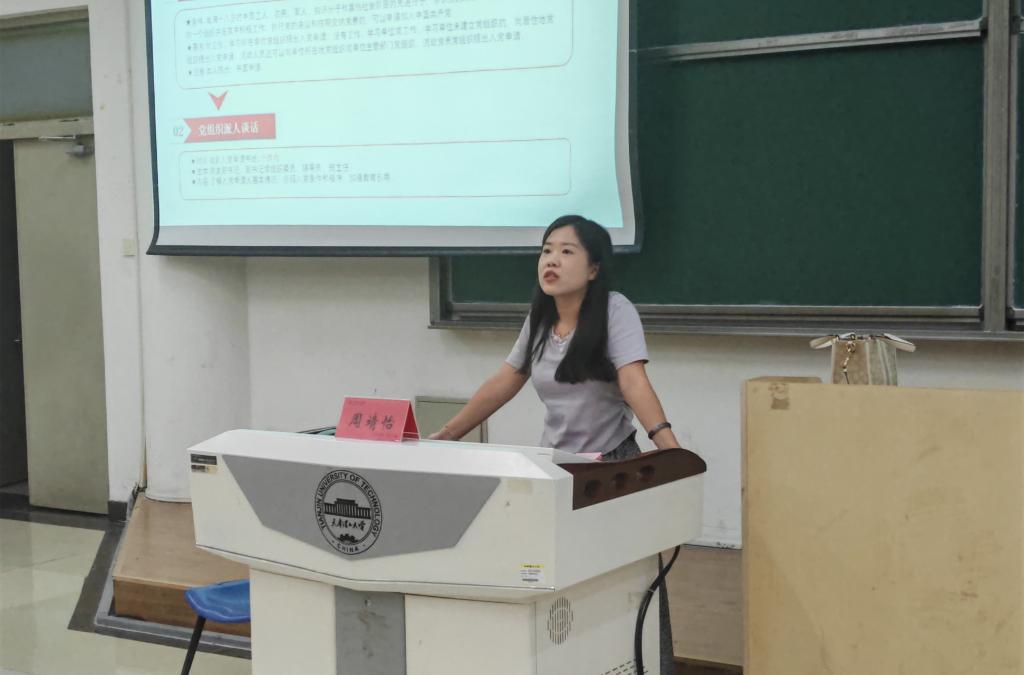 学院党建工作负责老师周靖怡以“心中有信仰 脚下有理想”为题开展入党启蒙教育,围绕“党的发展历史”“大学生入党的意义”“发展党员的流程”等三方面,帮助新生明晰入党动机,并对入党条件、材料准备、流程规范等实务要点细致讲解,为新生向党组织靠拢打下基础。
