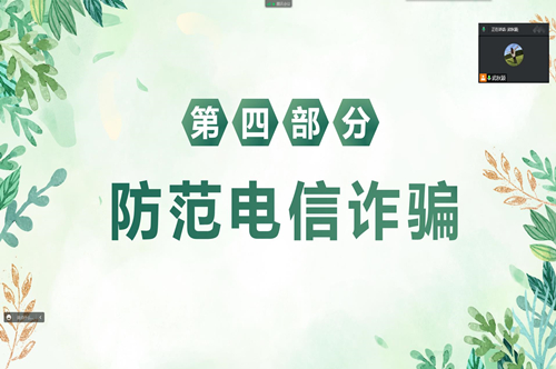 会上,新生辅导员强调了开展安全教育的重要性,提出加强安全意识、做好自身防范,是大学生学习生活的重要前提保证。随后,辅导员重点围绕校园管理规定、防疫宣传教育、宿舍安全管理和防范电信诈骗四个方面进行详细解读,并结合近几年高校电信诈骗案例,着重介绍了常见的诈骗套路、方法以及防范要点,提醒新生要做到理性消费,不要轻信陌生人,注重防范电信诈骗。