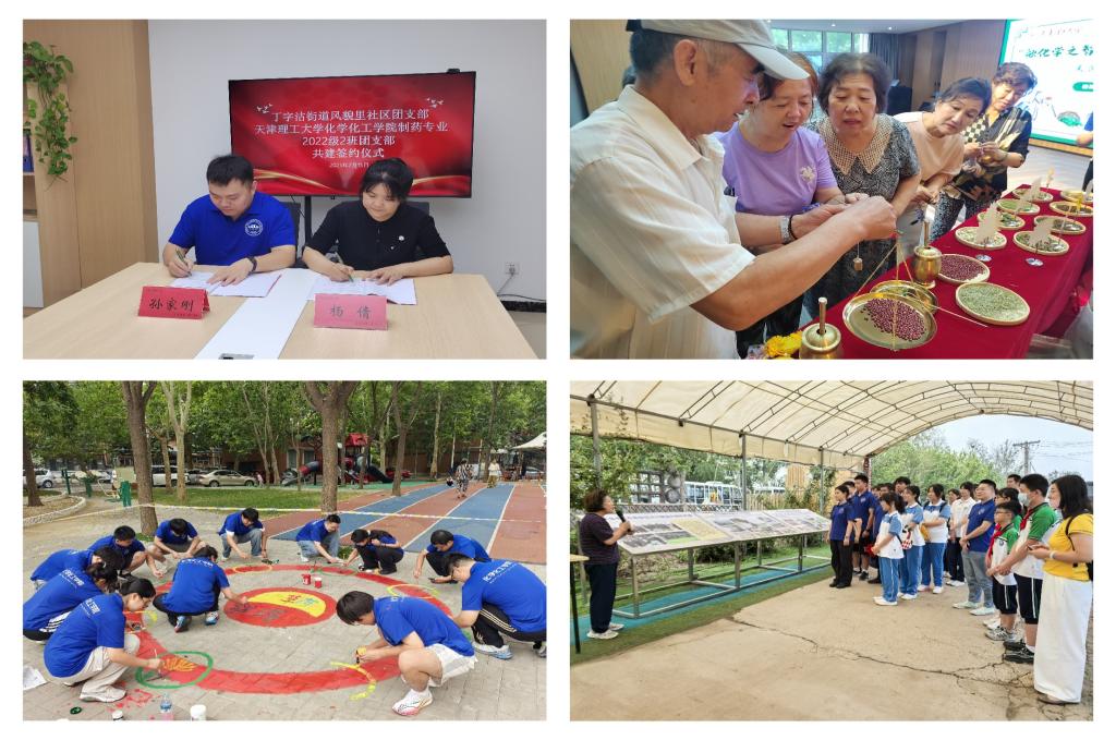 丁字沽街道风貌里、十段社区,学院与社区团支部签约共建平台。居民在“巧手制香”中探索草药化学成分,在 “绿色地球”井盖彩绘中感受环保理念融入街景意趣,“中草药蹲”“跳房子”等游戏让童趣成为知识传播的催化剂,“污水净化”实验直观展现化学技术治污的力量。西青区第六埠村“行走课堂”上,联合大中小学师生沿着研学点位,在千亩生态画卷中聆听《幸福大道上的小故事》,让“两山”理论与奋斗精神在乡土浸润人心。