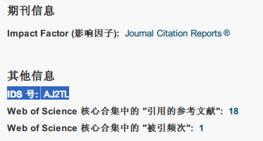 SCI论文的检索号又叫IDS号,由数字和字母组成,共5位,在论文检索页的最下面点击查看更多数据字段,在【其他信息】里出现,如下图所示