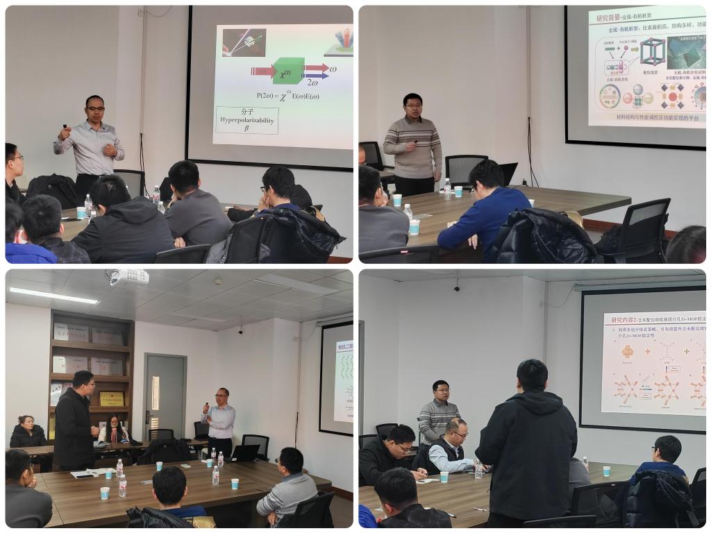 赵炯鹏教授主持会议并致欢迎辞。徐加良教授作了题为“手性非线性光学材料”的学术报告。报告中,徐加良教授向参会师生详细介绍了线性与非线性光学现象的产生原理、手性有机-无机杂化钙钛矿材料(OIHPs)的特点与发展,以及当前该领域研究面临的困难与挑战。随后,徐加良教授围绕手性OIHPs材料研究中的科学问题,详细阐述如何通过手性胺阳离子引入以及手性诱导策略,从分子层面实现对手性OIHPs材料结构及非线性光学性质的精确调控。徐加良教授的研究不仅丰富了手性OIHPs材料的种类也拓展了该类材料在非线性光学领域的应用。
