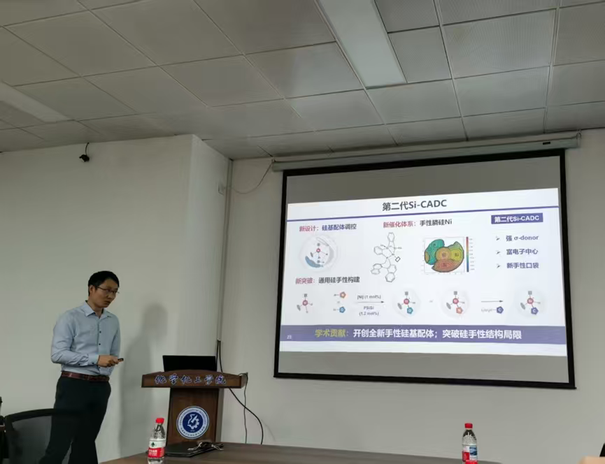 Evans教授报告了其团队通过开发铑催化的碳-和杂原子-连接的1,6-烯炔和烯基环丙烷的[m+n+n]碳环化反应,该反应以一氧化碳、烯烃、炔烃和丙二烯为偶联组分,可以从简单前体快速构建复杂分子骨架。何川研究员报告了其课题组围绕“硅、硼手性高效精准构筑”这一科学问题,开发的通用普适的催化不对称反应构建硅手性、硼手性的工作。杨晓瑜研究员报告了其课题组发展的手性磷酸催化芳胺和偶氮二甲酸酯的高立体选择性不对称亲电胺化反应,实现了各类具有点手性的α-叔胺、轴手性、平面手性以及固有手性芳胺及其衍生物的不对称合成。黄焕明研究员报告了其课题组开发的若干可见光介导的光化学重排,反应实现了以简单烯烃构筑系列张力环骨架,及利用过渡金属和可见光协同催化模式下的自由基策略构筑若干含杂原子的生物电子等排体分子骨架工作。