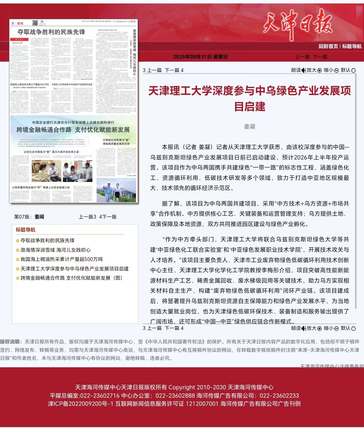 天津日报:天津理工大学深度参与中乌绿色产业发展项目启建