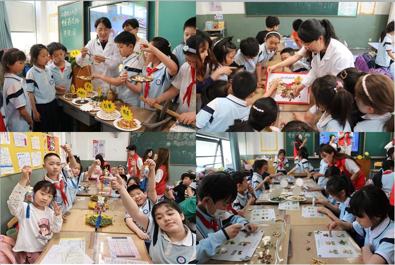 互动体验环节形式多样、内容丰富。王老师实景教学,青少年们拿起传统制药实践工具,用戥子称量药材、用铁药碾碾碎药材、用铜杵臼捣碎药材,感受中药炮制的“十八般武器”。通过“眼看中药材外表特征、手摸感受药材性质、鼻闻气味辨别中药”等方式,青少年们辨识百草,纷纷拿起对应产区药材,拼绘“道地中药材分布图”,感受中医药文化的博大精深和独特魅力。在中药材标本制作和香囊DIY体验区,青少年们积极互动、热情高涨,表现出对中医药知识的浓厚兴趣。